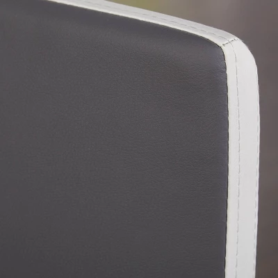 - Uniquely upholstered chairs in a two-tone Gray and White faux leather