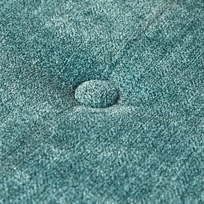 - Upholstered in a rich teal-colored fabric