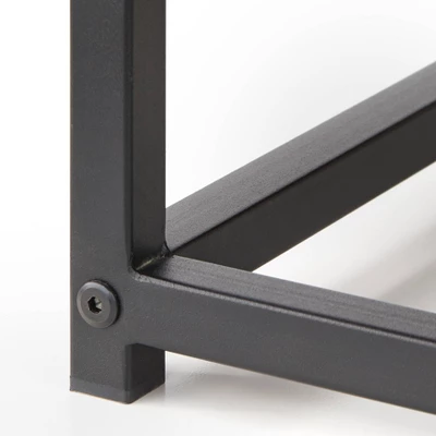 - Constructed of particleboard, metal legs and plastic drawer pulls; 7.9-inch floor clearance